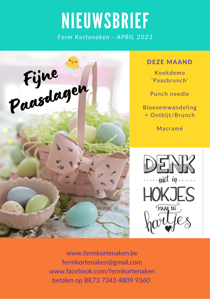 De nieuwsbrief van april is er! Posted on 24 maart 2023 by FermKortenaken Wil je niks missen, schrijf dan tijdig in! Delen:Vind-ik-leuk Aan het laden...